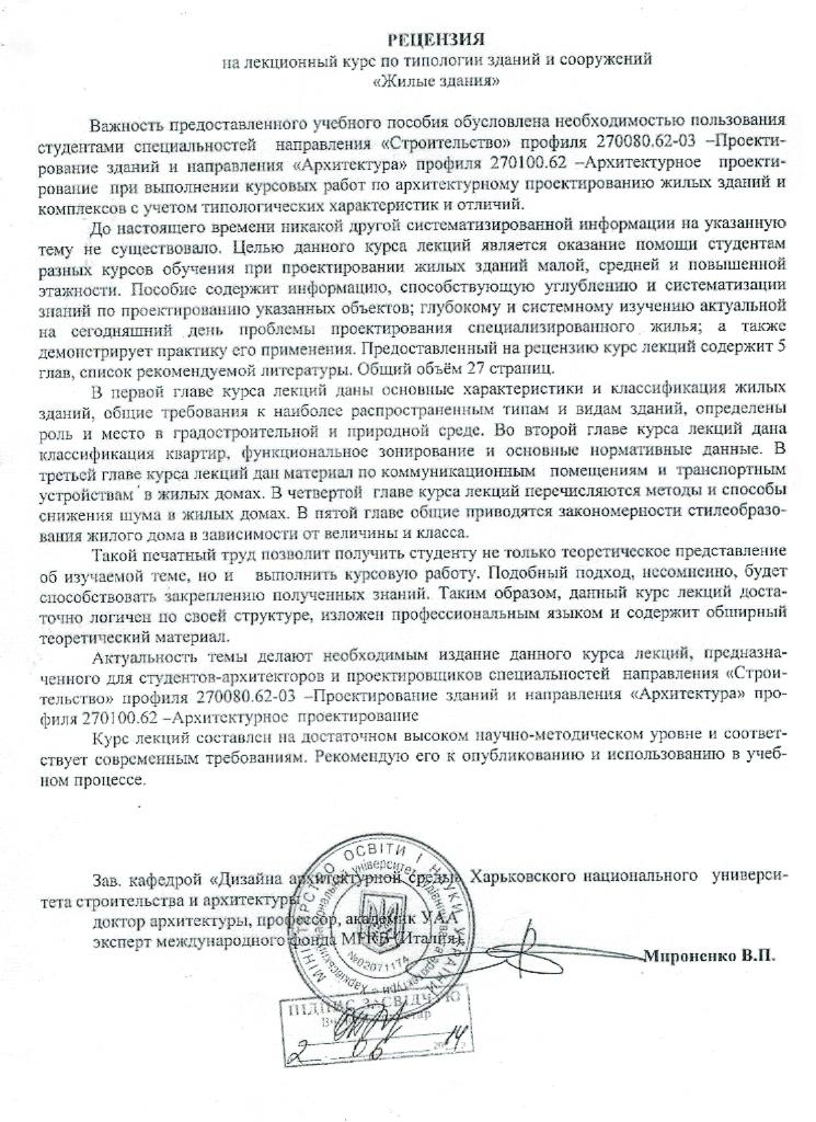 - Рецензия к курсу лекций по дисциплине "Типология жилых зданий и сооружений" / Сост.: И.Л. Першина. – Белгород: Изд-во БГТУ, 2014. – 75 с. (ссылка для скачивания).